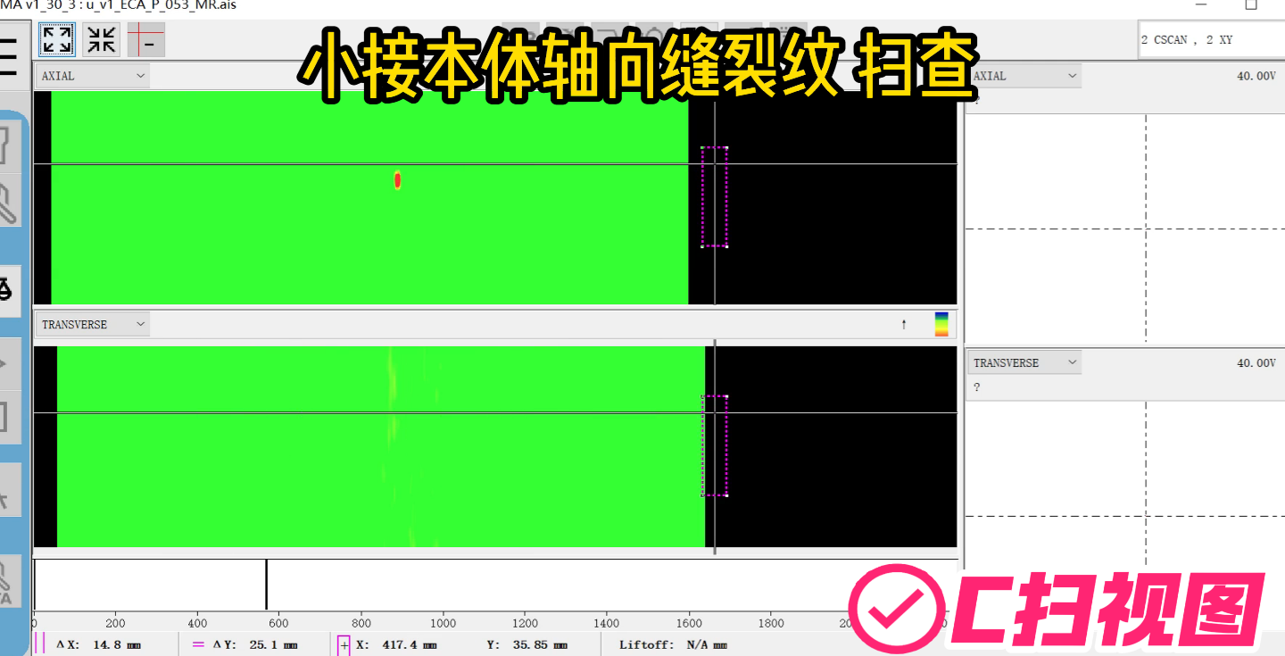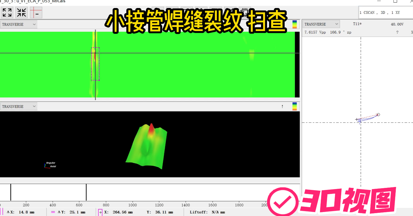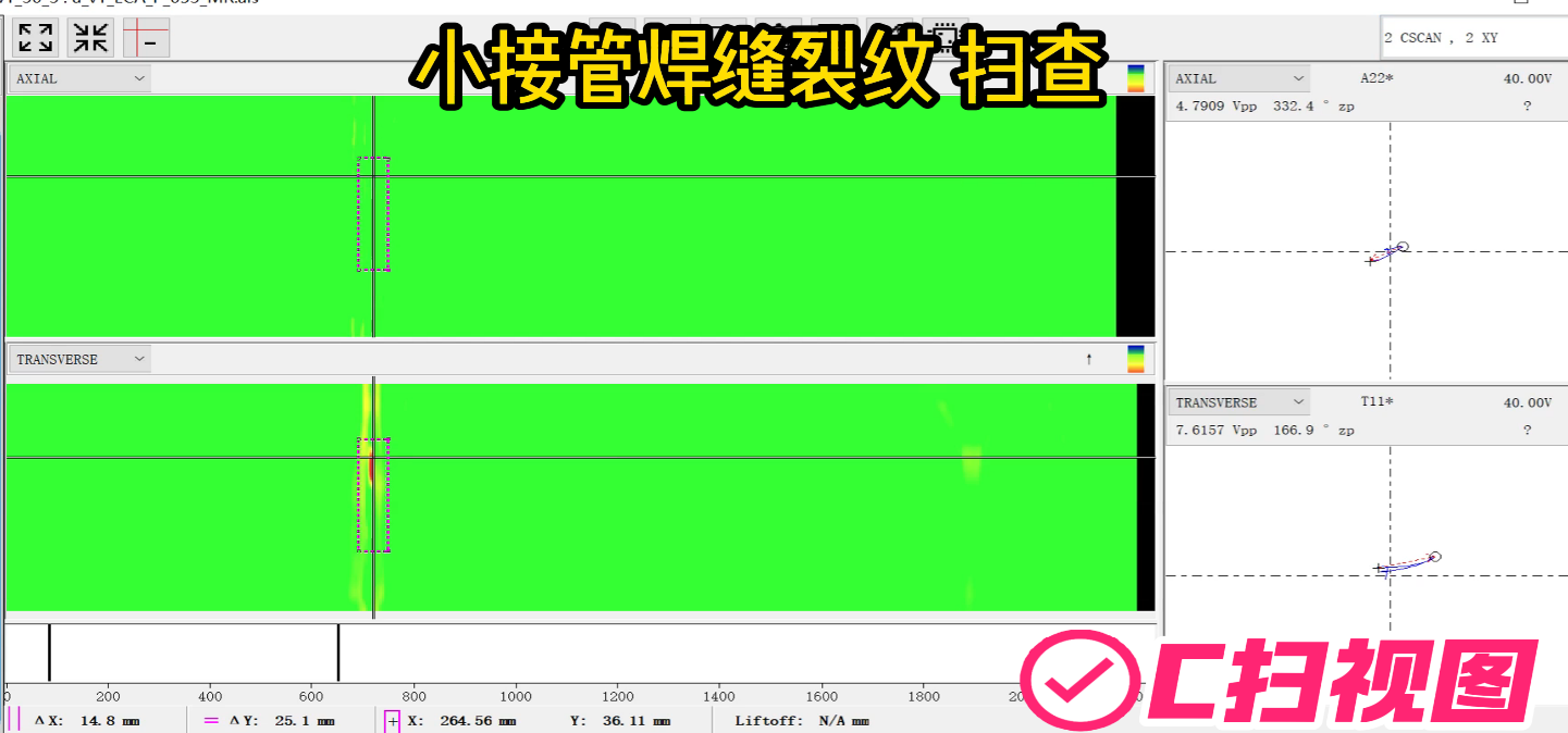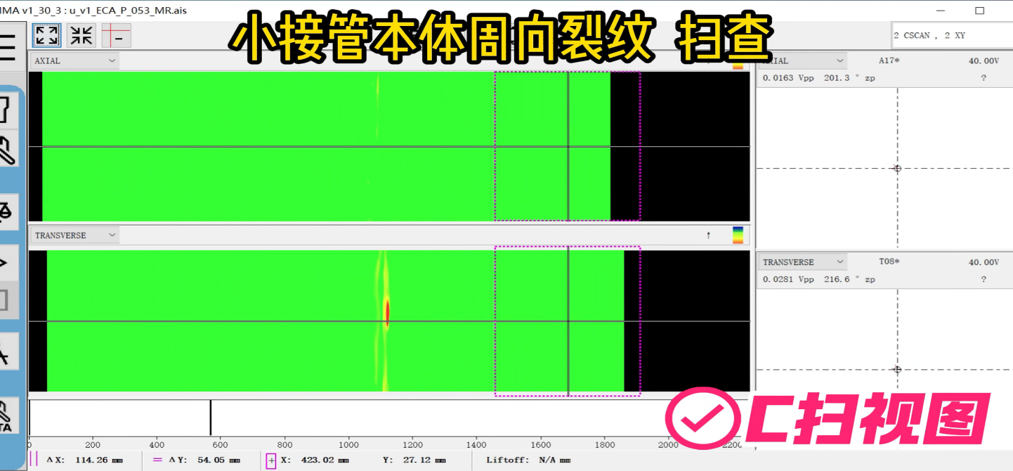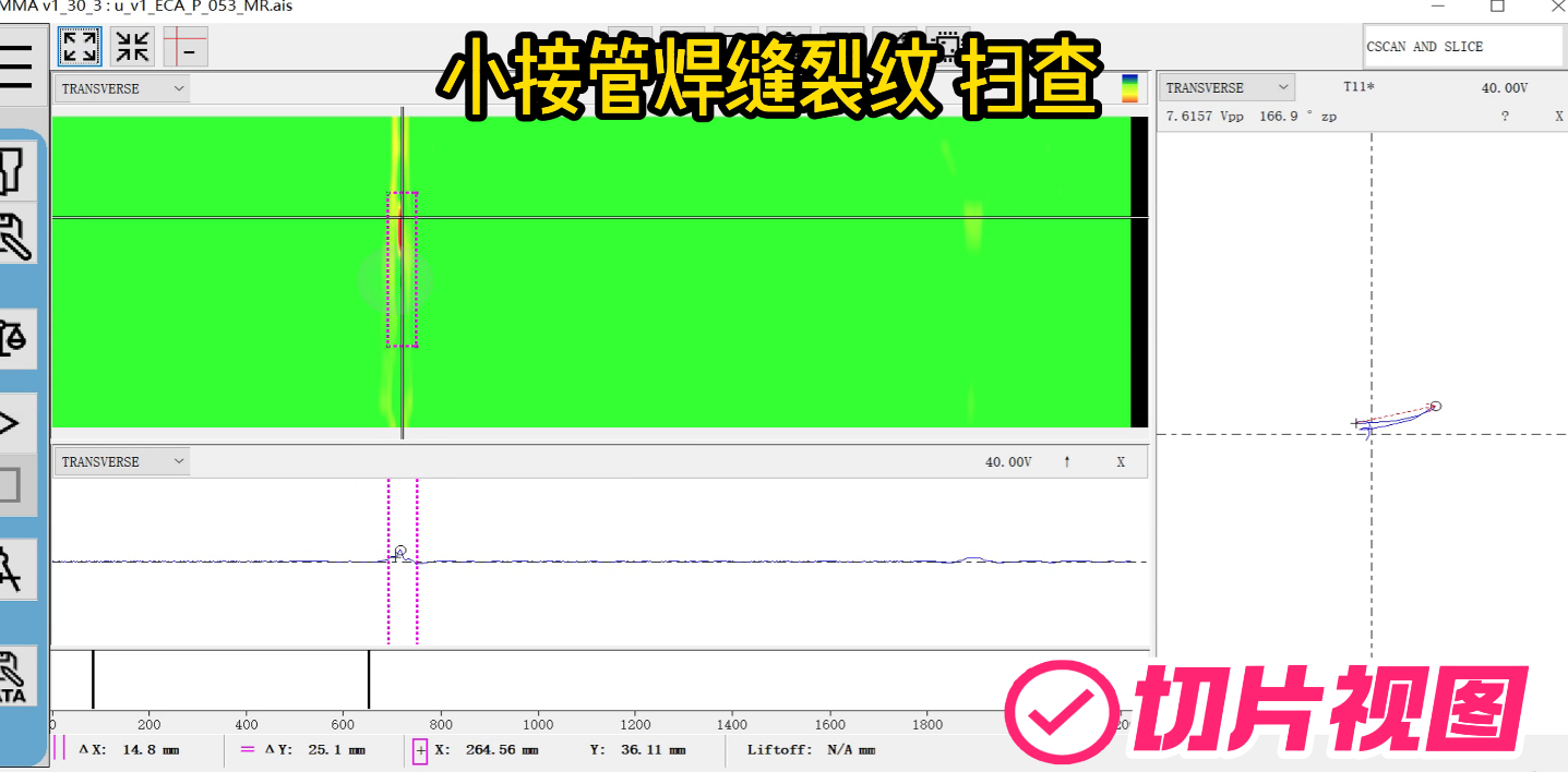 检测原理 基于电磁感应原理,当给阵列涡流柔性探头的激励线圈通以交变电流时,会在被检测的小接管本体或焊缝附近产生交变磁场,在小接管金属材料中感应出涡流。若小接管本体或焊缝表面或近表面存在裂纹,由于裂纹处电阻较大,会使电涡流的流向发生扭曲,朝着裂纹的边缘或底部偏转,进而影响小接管周围的感应磁场分布。阵列涡流柔性探头中的多个感应线圈可捕捉到这些磁场变化,并将其转化为电信号,通过对这些电信号的分析处理,就能判断是否存在裂纹以及裂纹的位置、形状等信息。 应用优势 高灵敏度与分辨率:能够检测出小接管本体及焊缝中极其微小的裂纹,即使是深度较浅、宽度很窄的裂纹也能有效识别。能精确分辨出相邻很近的多个裂纹,不会出现漏检或误判的情况。 非接触式检测:无需与小接管表面图层打磨,可避免对小接管表面造成损伤,也无需进行繁琐的表面清理和打磨工作,特别适用于具有防腐涂层的小接管检测,能大大提高检测效率,降低检测成本。 适应复杂形状与结构:柔性探头可根据小接管的形状和尺寸进行弯曲、变形,能紧密贴合小接管的表面,无论是直管段、弯头、三通等不同形状的小接管,还是焊缝处的复杂结构,都能实现全方位、无死角的检测,确保检测的全面性和准确性。 快速扫描与成像:可以实现快速的大面积扫描检测,能在短时间内完成对小接管本体和焊缝的检测工作。同时,结合先进的信号处理和成像技术,能够将检测到的裂纹信息以直观的图像形式显示出来,便于检测人员快速、准确地判断裂纹的位置和形态。 多参数检测:除了检测裂纹,还能同时获取小接管的其他信息,如材料的电导率、磁导率等参数的变化,通过对这些多参数的综合分析,可以更全面地评估小接管的材料性能和缺陷状况,为后续的维修和维护提供更丰富的数据支持。 阵列涡流柔性探头小接管本体 / 焊缝裂纹检测测试 试块:小接管对接焊缝试块 说明:小接管焊缝模拟裂纹、小接管焊缝热影响区裂纹、小接管本体裂纹